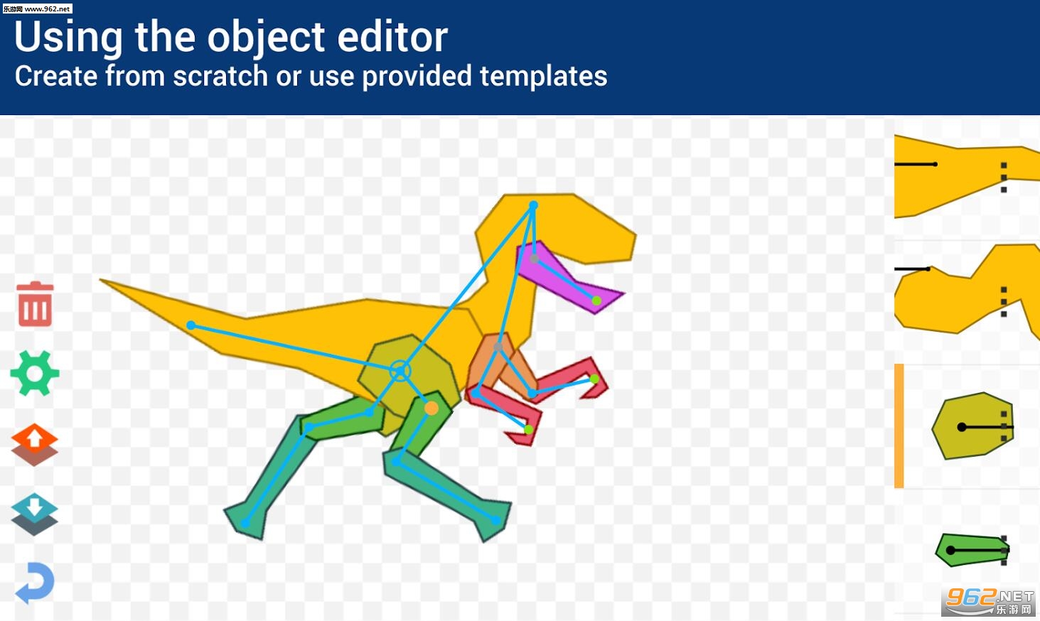 项目编辑器 - 用于使用绘图工具自己的性格或导入现有的图形的构造函数。如何画一个人物?只是做一个骨架和油漆它的每一个骨。