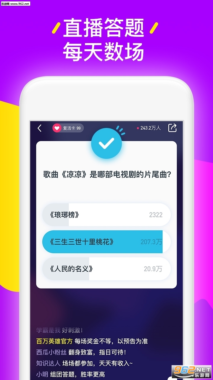 1.参加方式:打开西瓜视频,底部中间有个很炫的「答题赢钱」,点击进入活动页面,报名后即可参加答题。找不到的朋友可以搜索“百万英雄”即可。