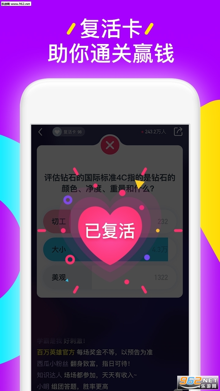 1、适用于百万英雄的答题辅助,海量的全真模拟题库资源,线上练习;