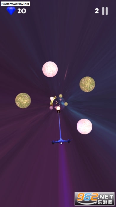 玩家控制飞船飞越黑洞,在黑洞里有很多星球阻挡前进。使用飞船上的武器,尽可能消灭更多的星球,以及收集掉落的钻石。