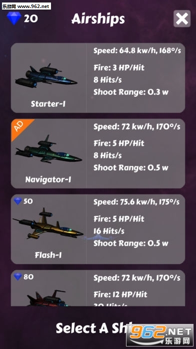 部分星球拥有钻石资源,爆炸后会留下钻石。用户获得钻石可以购买性能更好的飞船。不同的星球的生命值是不一样的,高能量的星球需要更好的武器才能摧毁。