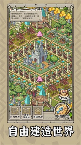 1、自由的创造经营游戏,玩家扮演创造者,孕育不同的种族。