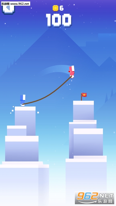 在游戏中,绳子的两段分别绑着一个角色,玩家要控制着这对命运被绳索“羁绊”在一起的好基友在冰封峡谷开始冒险。游戏开始后,点击屏幕就可让其中一个角色跳跃,按压屏幕时间越长,跳跃的距离越远,玩家要根据峡谷间隙来判断,保证每次都能安全着陆。这个峡谷峰顶是高低不平的,且峰顶不一定是完全平整的,因此当他们着陆时需尽快离开,否则会滑到谷底。