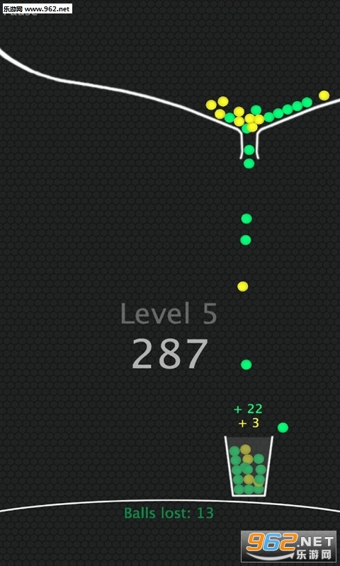 游戏的目标是通过在屏幕上敲击并释放球来使球通过杯子。你通过杯子获得的每一个球奖励你不同的点数,取决于杯子的颜色。如果球漏了杯子,它就会消失。当你失去所有的球,游戏结束。