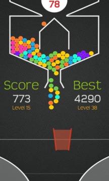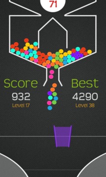 游戏的目标是通过在屏幕上敲击并释放球来使球通过杯子。你通过杯子获得的每一个球奖励你不同的点数,取决于杯子的颜色。如果球漏了杯子,它就会消失。当你失去所有的球,游戏结束。