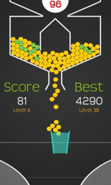 一款休闲闯关游戏,操作简单,就是像沙漏一般,点击屏幕开门放小球掉下去,让小球尽可能多的掉进下方的杯子中,更加的富有挑战性,快来试试吧!