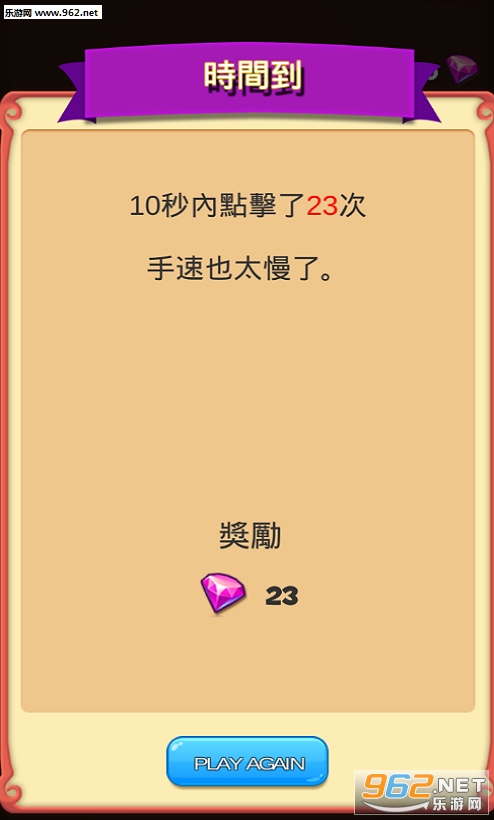 在10秒的时间内,快速的点击屏幕上的按钮。看看到底可以点击多少次呢?请谨慎测试,小心手部抽筋