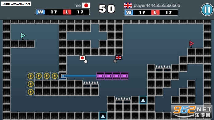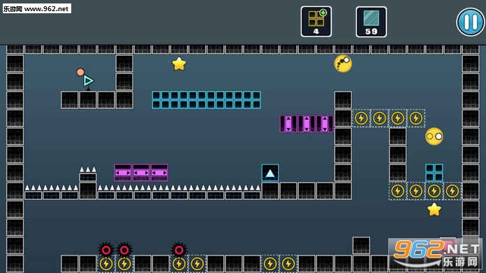 敏捷跳跃闯关游戏,游戏的玩法简单,就是左右的跳跃小球躲避障碍物即可,不要碰到钉刺等,不然你就死了,适合休闲时玩。