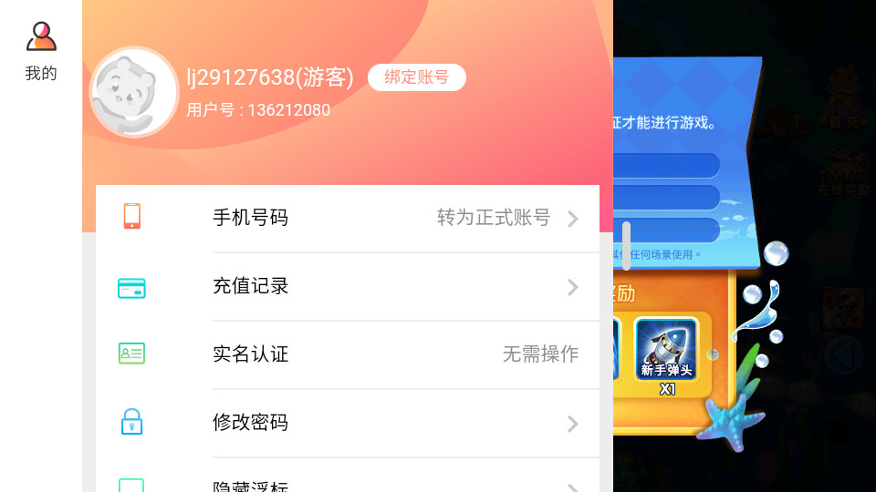 下载安装并打开小玛丽捕鱼,点击右上角账号登入