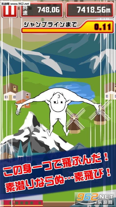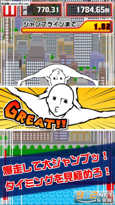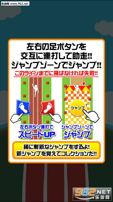 助跑阶段需要快速交替点击红蓝按钮,还要在极短的跳跃区内点击黄色按钮跳出,之后就不用管了,看主角能一脸舒爽飞到多远。