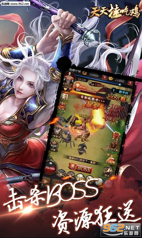 《天天挂吃鸡》是一款经典暗黑题材MMORPG手游。游戏主打实时换装,炫酷装备随意展现。独创伙伴系统,三国武将来助阵。动作冒险击杀巨型BOSS,豪华装备掉一地。大胆创新,世界BOSS战、跨服战、野外战、工会战。超炫技能、华丽大招。多单位同屏激战,快感无限,不可错过的战斗体验。