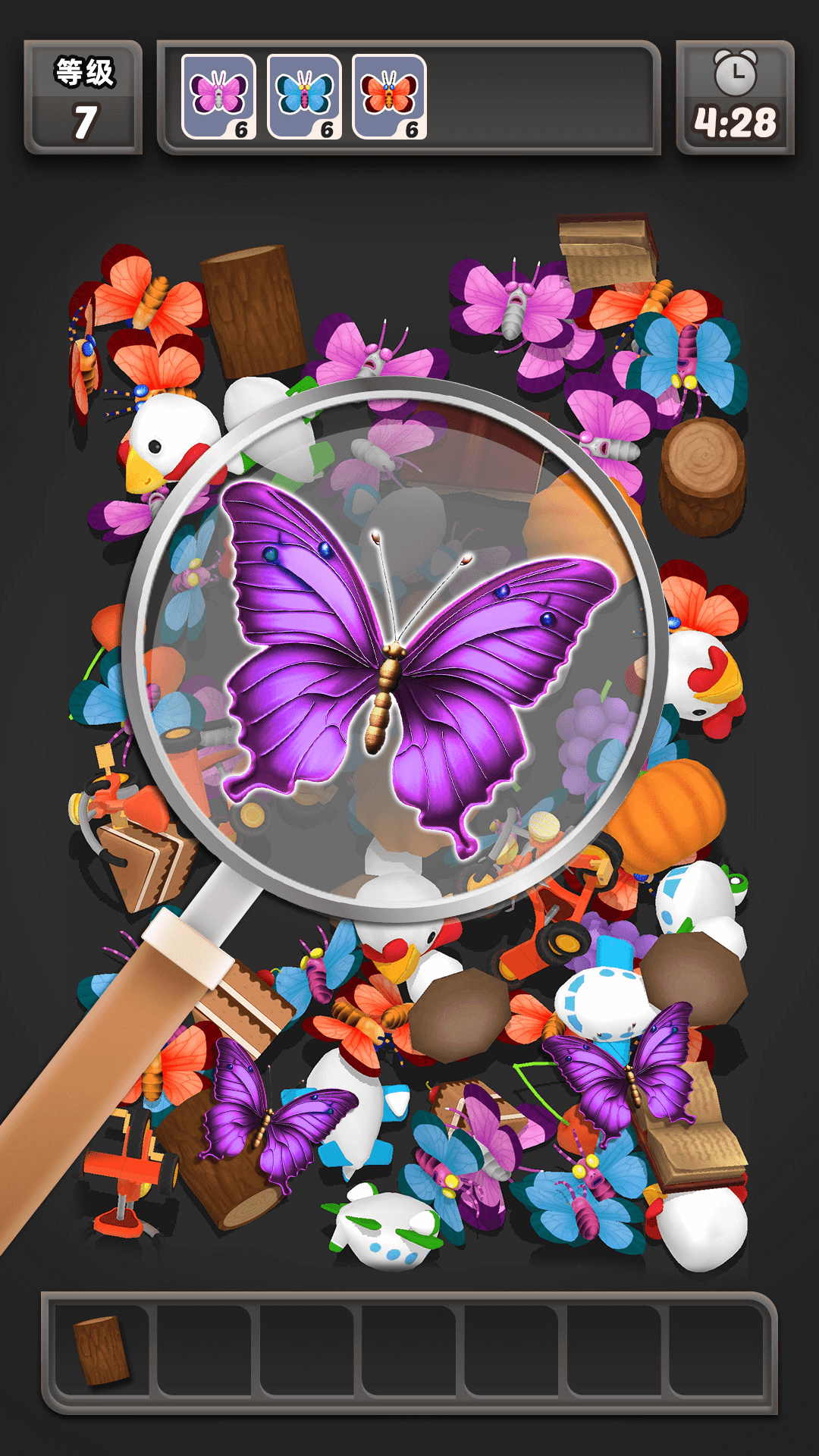 每个关卡都有不同的收集目标,收集到目标物品即可过关。