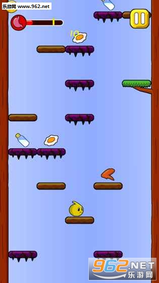 一只可爱的小不点,想要吃到美味的食物,帮助它越过重重障碍向上跳跃吧,这样它就可以吃饱饱咯。