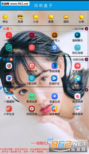 玩机盒子2.0破解版是一个非常有意思的软件,当然也有很多的功能,包括一键亮钻,还有扣字软件,影视会员等等,更有各种的表情包装逼生成器,赶紧来下载玩机盒子2.0破解版吧!