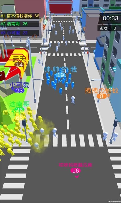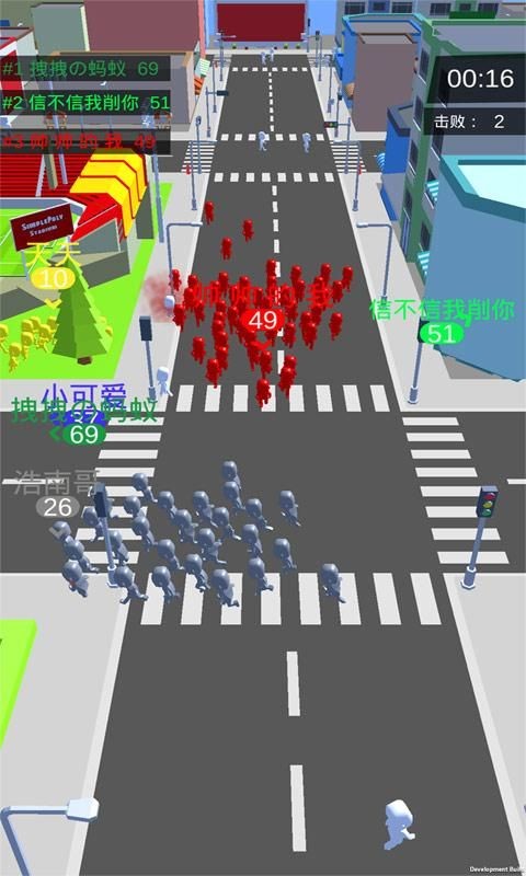 人潮汹涌采用竞技大乱斗玩法,玩家需要不断地聚集人群来将自己变得更加强大,聚集人数越多越强,指挥人群消灭城市里面所有敌人才能取得胜利,还有超多不同的关卡等你挑战,每个关卡都能给你带来不一样的游戏乐趣,让你可以在这里玩得过瘾,享受游戏带来的欢乐。
