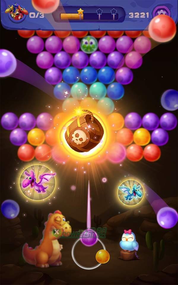 3.游戏操作简单,上手也是十分容易,轻点屏幕,指定泡泡射击的位置。