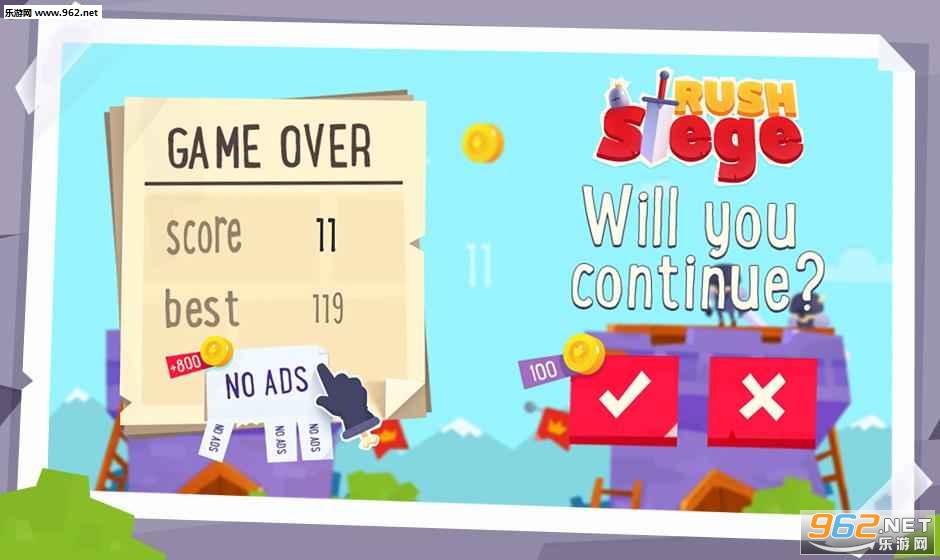 游戏中你可以通过点击左右屏幕来攻击突破你城堡的士兵,游戏中的敌人分为两种,带盾的和不带盾的,你需要计算好节奏,一旦敌人登上城墙你就需要消灭他,否则你只能被敌人消灭掉了。