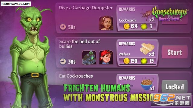 《鸡皮疙瘩惊恐乐园汉化版》是一款画风诡异的恐怖向怪物冒险卡通游戏,玩家将前往异国恐怖的乐园,寻找地图中的怪物,解锁更多剧情和特殊材料,丰富的图鉴内容精彩的关卡和模式,上百个不同的家角色,通过惊吓人类获取新的道具,游戏玩法新颖值得体验!