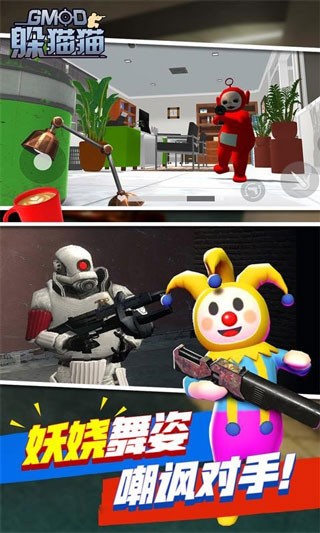 天线宝宝躲猫猫是一款十分有趣的动漫模拟类手机端游戏,在这玩家化身在天线宝宝的动漫世界中,玩家成为天线宝宝中一员,跟其他天线宝宝一起来玩躲猫猫,左侧虚拟摇杆的操纵走位,右侧射击、变身等多点功能,只需点击或者滑动即学即会。在游戏中不同阵营的道具和武器种类十分丰富,每一款都让你体验到滑稽的感受。精美超清的游戏画风让你尽兴!