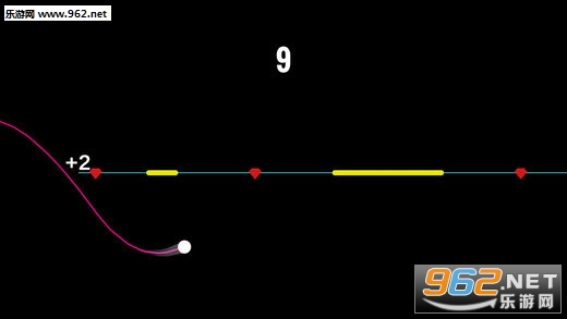 玩法很简单,按住屏幕小球向上加速。注意,小球越过红线后松开手指将不能再次加速,只能坠落,需要等到红线以下才可以再次加速。