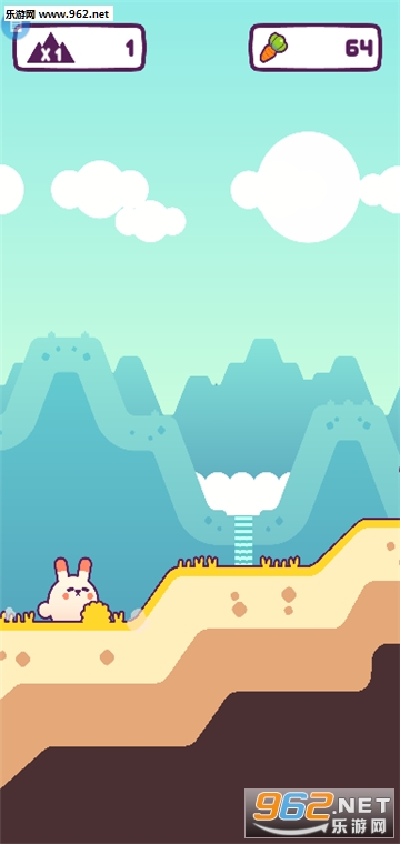 该游戏非常考验玩家的时间把控能力,通过按住屏幕的时间长短来决定小胖兔的跳跃距离,控制一只可爱的小胖兔在一个没有尽头的小山坡群中跳跃前行,看似简单但是非常考验玩家的技巧,一不小心跳到了瀑布中或者斜坡上都会导致小胖兔挑战失败哦。不过不要担心,前进的路上危险重重但