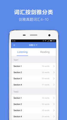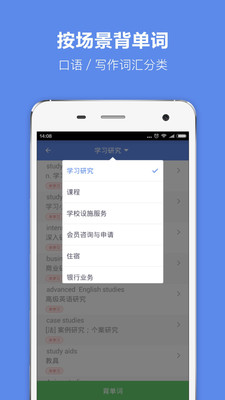 从词库的选取(剑雅和真题中的高频词汇)到功能的设置(剑雅核心单词,同义词归类,听力写作学科分类)根据雅思考试特点量身定制。