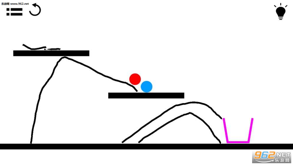 游戏目标就是画出你能想到的任意形状的线条,使小球进入相同颜色的杯子里面。