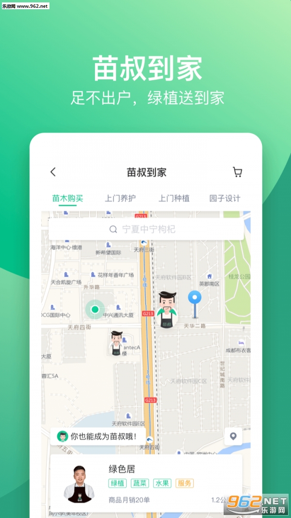 2、若您懂得绿植养护知识,期望服务城市家庭,在苗叔app这里,您也可以成为一名苗叔,将绿色生命,送入城市家庭。