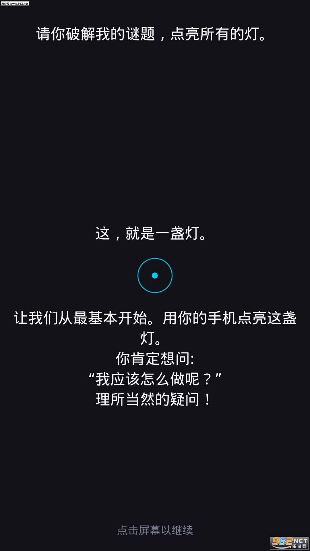 从谜题图上选择一个等级。每个等级都有一个生动的屏幕提示来帮助解谜。你必须解决每一个谜题,来点亮每一盏灯。一盏灯亮表示你已经攻克了一个谜题点。