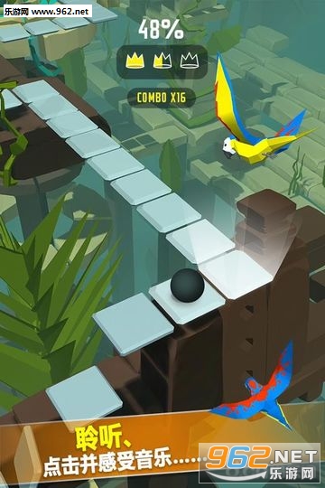 每个关卡都是在你眼前建造的迷宫。要想预测接下来会出现什么,以及对蜿蜒曲折的形势做出反应,你必须仔细听音乐。旋律的节奏是游戏内容的关键。