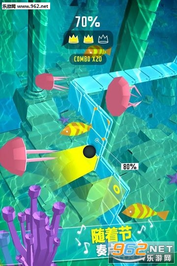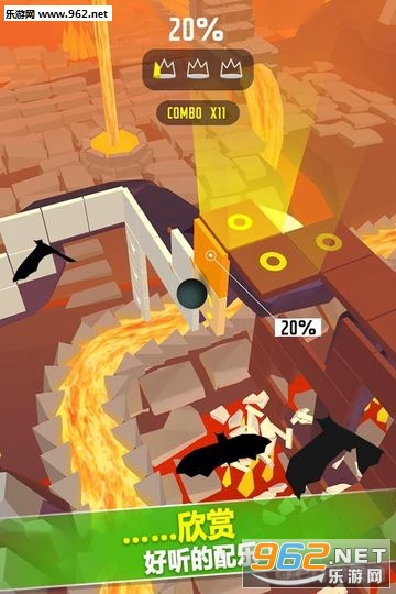 每一关的皇冠不是踩到就能获得,需要点对节奏来增加皇冠收集进度,相比跳舞的线这款游戏更贴近于原始音游模式。