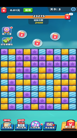 3、一边闯关一边得红包,超级经典的消除玩法,顺利化身成为消星星达人。