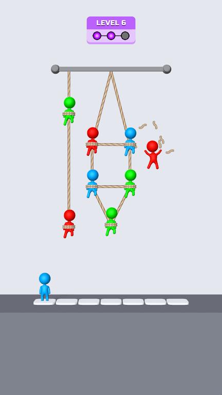 在rescue triple要解救被绳子绑住的人,你必须按顺序解救相同颜色的救援者。解决难题以清除关卡。