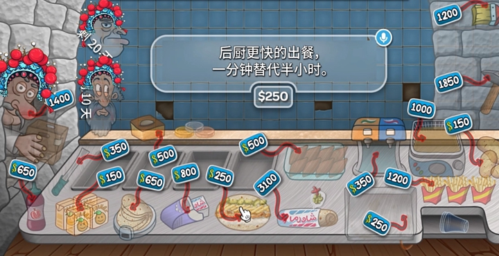 升级你餐厅的各个方面,从最新鲜的食材和最美味的沙威玛食谱到装饰和先进的厨房设备。与竞争餐厅一较高下,争取成为城里最好的沙威玛大厨!