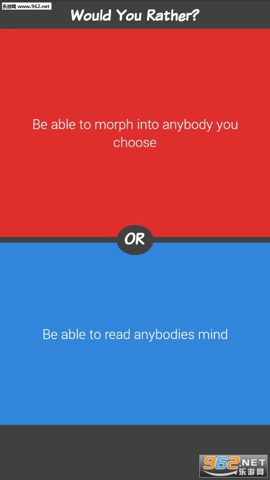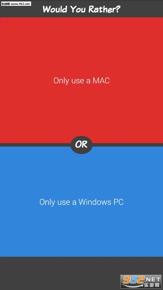 第一个你愿意(的)社交网络!有两个可能的答案,将打击你的头脑疯狂搞笑回答问题。提交你自己的问题,看看社区的答案。答案组成最问题成为排行榜第一名!该应用程序有一个巨大的量的问题,更多的问题每天都在增加。有这种应用的一个很好的笑和加入的社区!