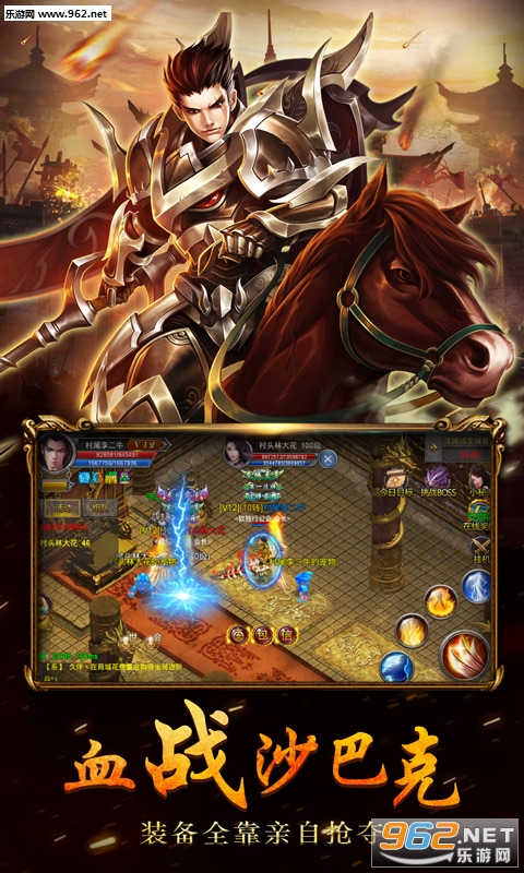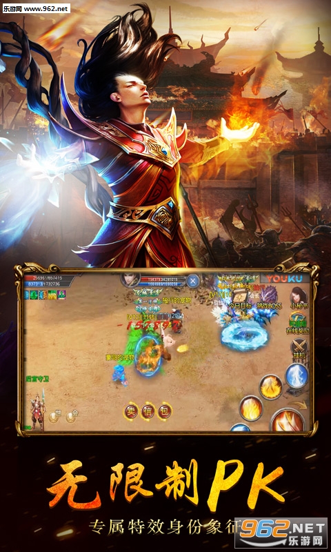 游戏主打自由PK模式,想打就打,自由掌控,比装备,比等级,当然还有更重要的那就是操作,双战刺杀位,战法道组合经典打法,也将会在游戏中体现!PK的终极玩法当属经典的攻沙战,行会战,万人PK的雄壮场景,一定会让你大呼过瘾!