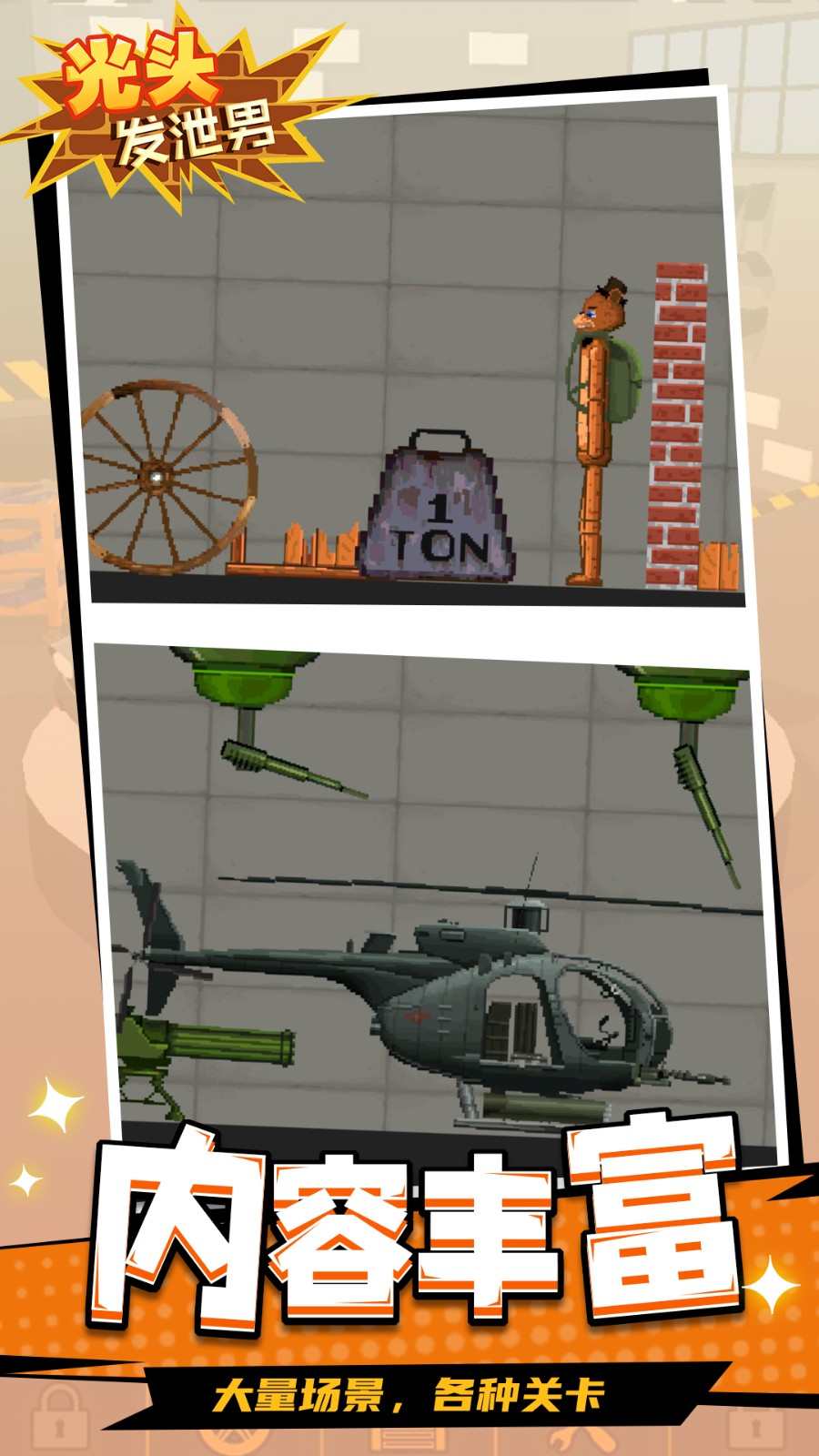 光头发泄男游戏图形多样,图片精美,游戏经过高级的渲染工具处理,给玩家真实完美的画质和游戏体验。