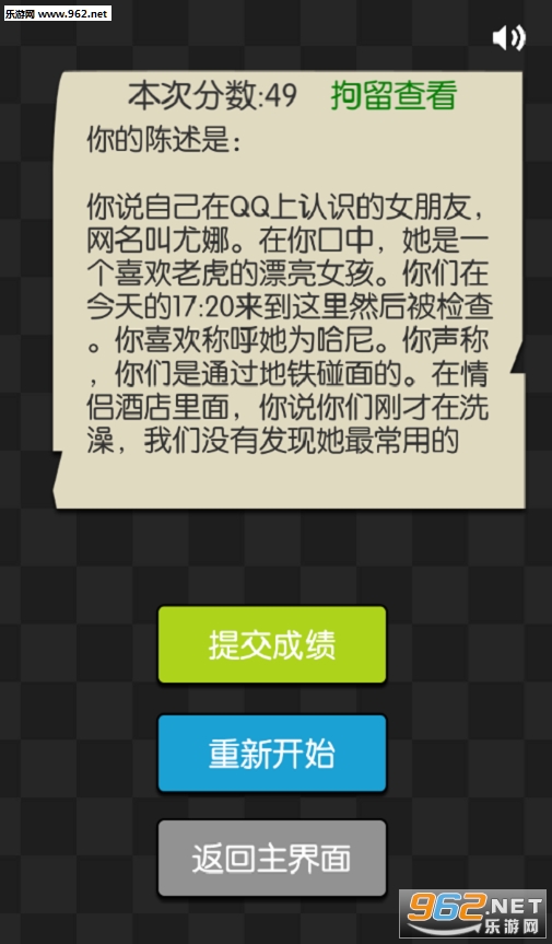 这种游戏就是让你自己根据自己的爱好和记忆来扩充剧情,如果你扩充的剧情与你之前说的不对,那么你就可能要被拘留咯。