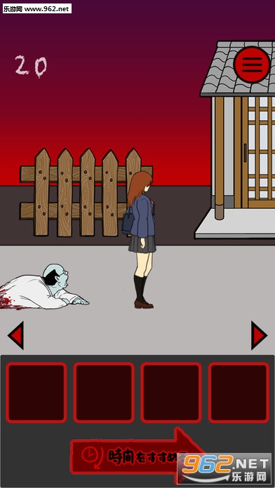 帮助回家的少女安全的逃离跟踪狂人的追杀,恶人的悄然行踪一直阻挡不鸟对血的追求,将你手中的道具通过各种手段制作诱饵去吸引他的注意吧!-猪头可以再到杀人魔到你身边的时候使用,放在你的身后可以为你争取时间;