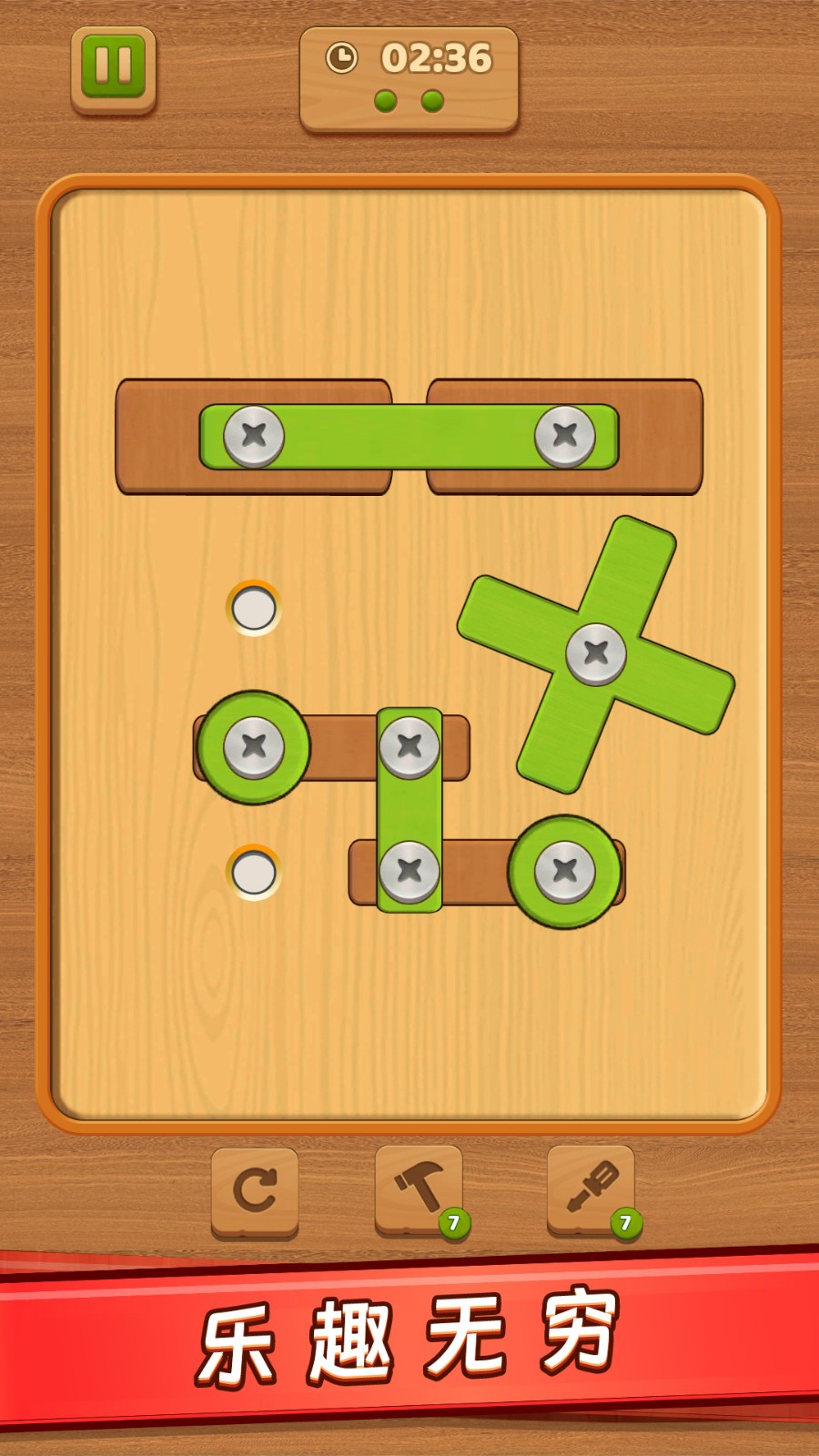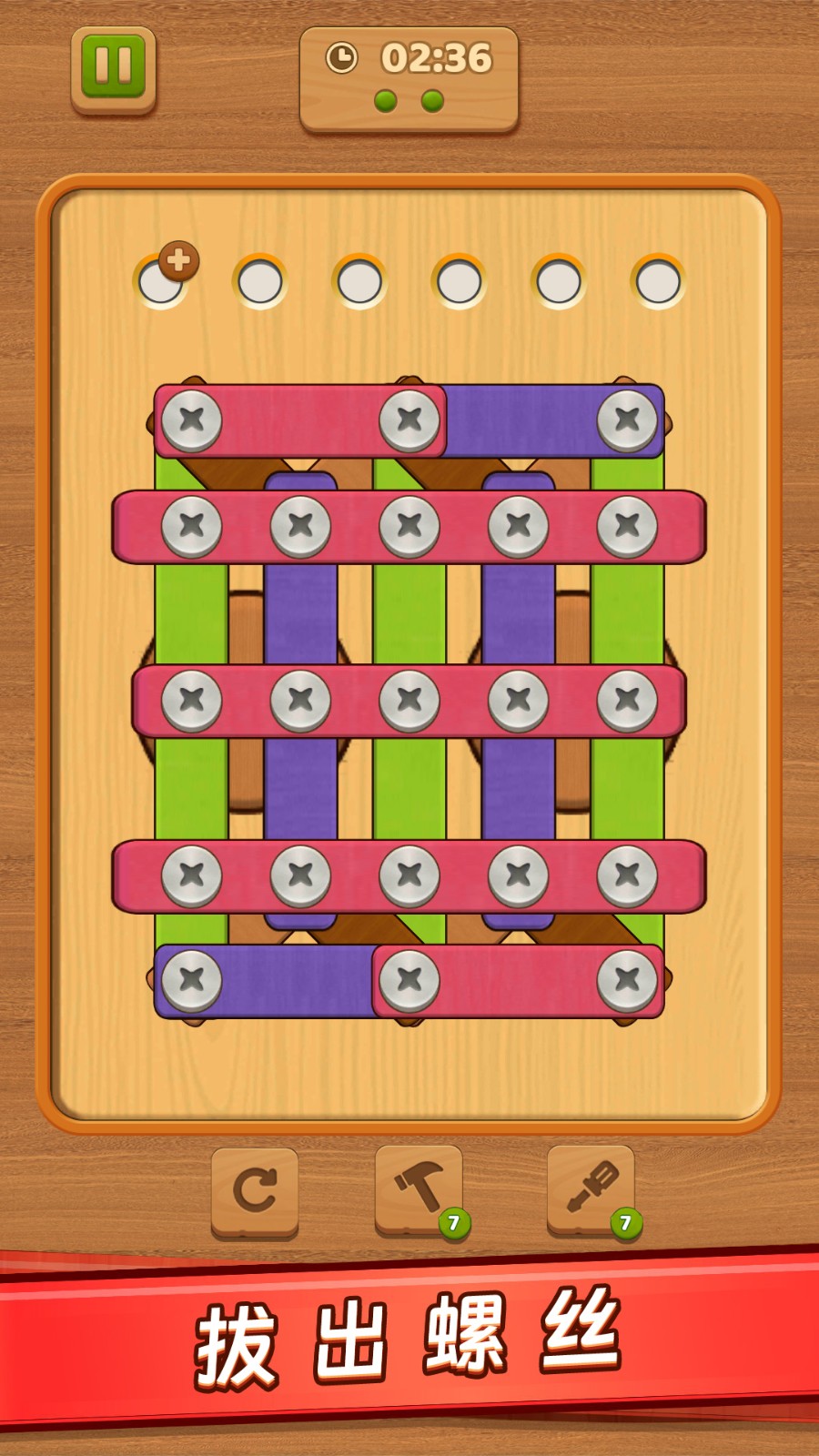 螺丝钉解谜是非常好玩的益智动手解谜游戏,游戏里面玩家需要通过点击,移动螺丝钉的位置,清除固定板子上的木条才能通关,非常考验玩家的思维能力,还有丰富的关卡等你体验,每个关卡都有不同的挑战和难度,喜欢的小伙伴快来开动大脑,不断挑战吧。