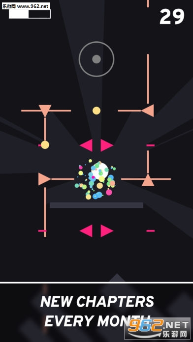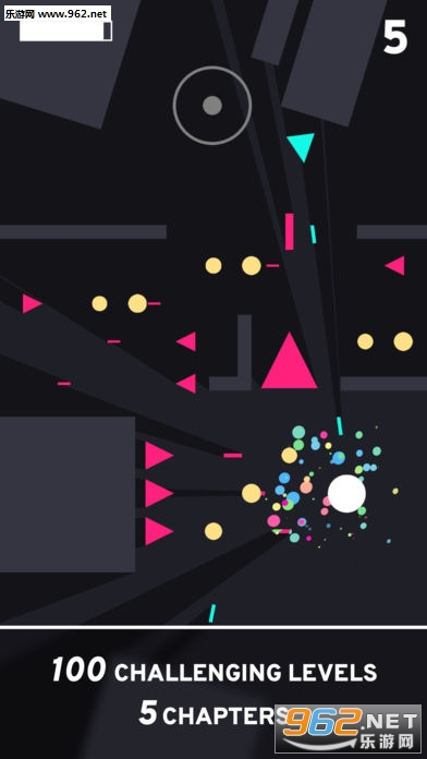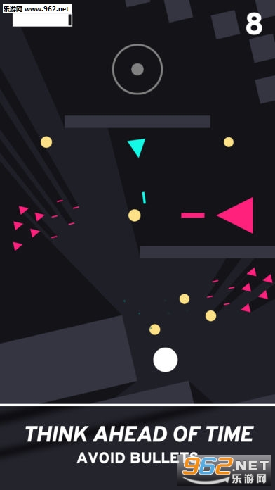 游戏中你需要躲避各种三角形的攻击,当你停住的时候时间也是停止流逝的,你需要利用这个规则来避开攻击收集到黄色的小球,每个关卡都会有不同的挑战。