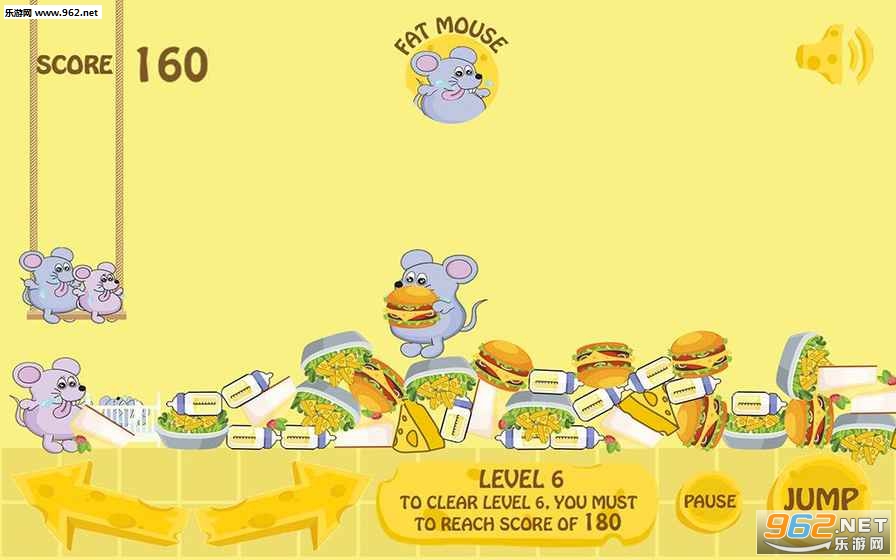 胖胖鼠们喜欢吃奶酪蛋糕!但是,他们只能在夜晚的时候悄悄获取这些美食,而且在获取美食的同时还要担心人们布下的各种捕鼠神器!你只需按住左右键控制胖胖鼠的跳跃方向即可!