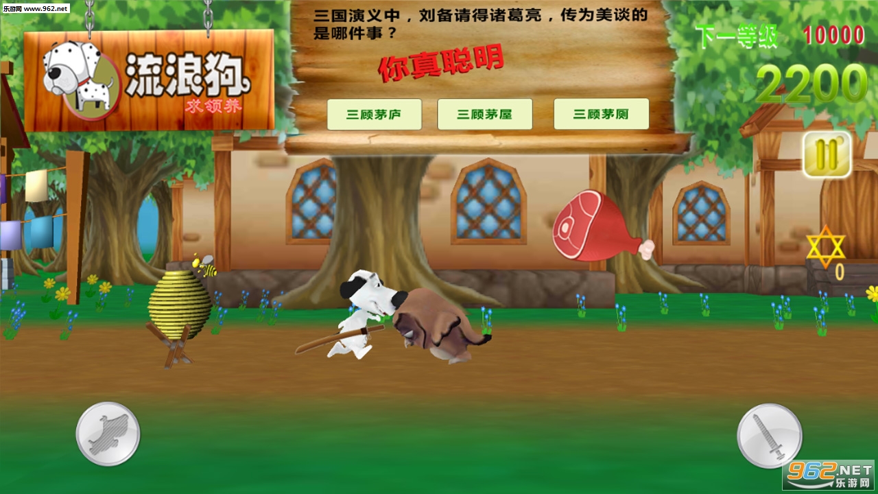 非常好玩的休闲益智闯关手游。游戏中,你将操控一只可爱的小狗,可以攻击和跳跃,拾取效果不同的道具,同时还要回答各种脑洞大开的问题。游戏画面精美,操作简单,同时还可以解锁不同的游戏场景和关卡!
