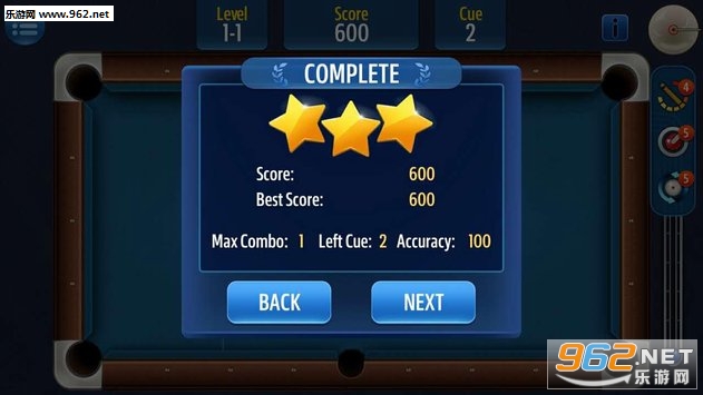 一款休闲台球手游。游戏中模拟了真实台球的8球玩法,练习你的球技,玩各种把戏,让你成为高超的台球大师。