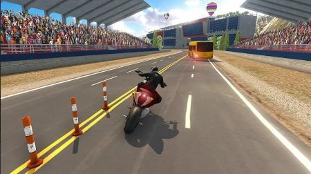 3、游戏里面玩家能够驾驶摩托车来与巴士进行刺激的竞速对决,超越巴士,赢得竞速比赛的胜利。