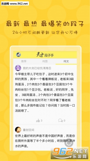 《天才段子手app》是一款有超多爆笑段子的软件。搜集了最新最全最搞笑的娱乐段子,各种搞笑图片,还可以自己上传各种搞笑作品,超大脑洞,各种高能,保证让你笑到喷饭。最新最全最搞笑的段子在这里集结,快来下载吧~