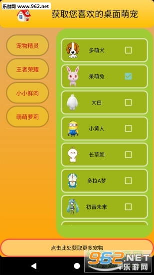 桌面萌宠app是一款非常有趣的手机桌面宠物软件,有没有现实生活想养宠物但是迫于多种原因而放弃?下载一个桌面萌宠,满足你的所有想法,用户可以自由的定制多种萌宠,比如小黄人、比卡丘、呆萌Q宠、小猫、小狗等,还有互动模式!