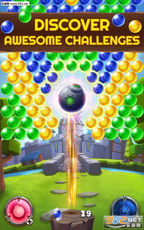 拖动手指移动的激光瞄准器在气泡的方向,将其抬起爆的气泡,你的目标是,直到排除板弹出所有的多彩气泡。同色相配流行的组合,赢得点的3个气泡以上。
