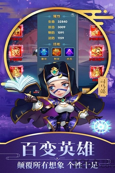 1.Q版卖萌三国人物,超写实风格,自由定制的卡牌养成玩法,千名文臣武将、装备道具,随心所欲的自由搭配。