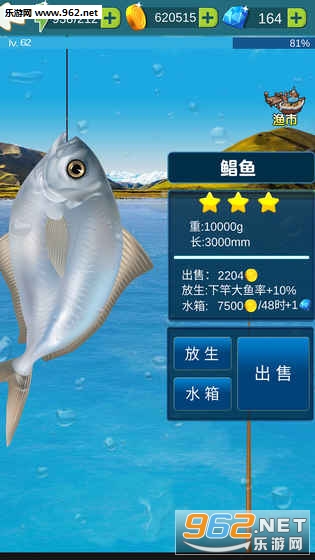 溜鱼时尽量从最低拉到满,但是前几下溜鱼不可以松太多剩25%的力量时就要按了,好鱼竿加上高等级才能钓好鱼才能赚钱。
